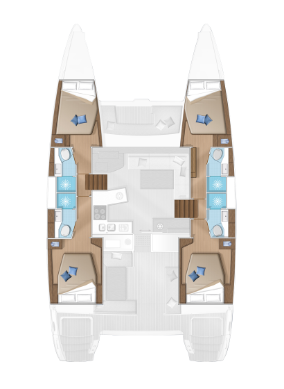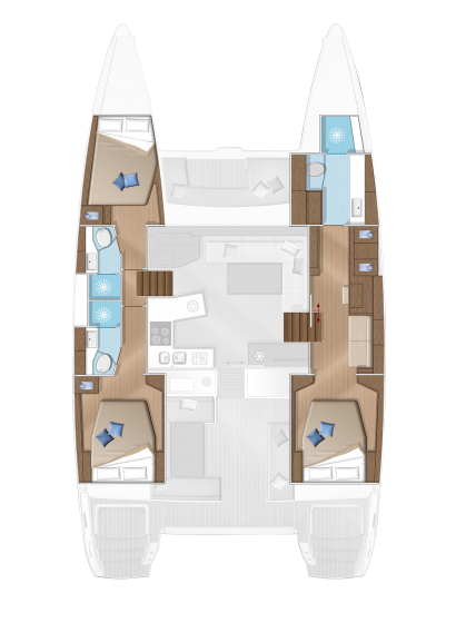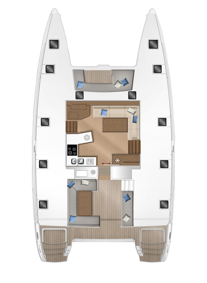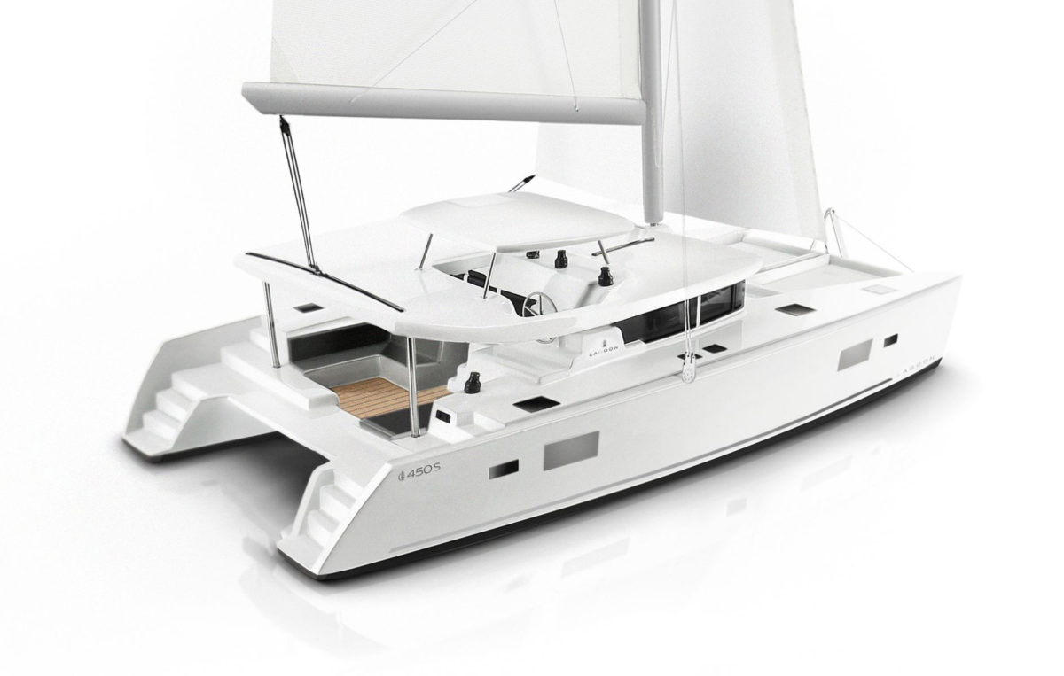 The SporTop version of the 450 allows boaters who wish to enjoy the comfort of a catamaran of 45 feet in a more conventional version, with a helm post on bulkhead in place of the flybridge.